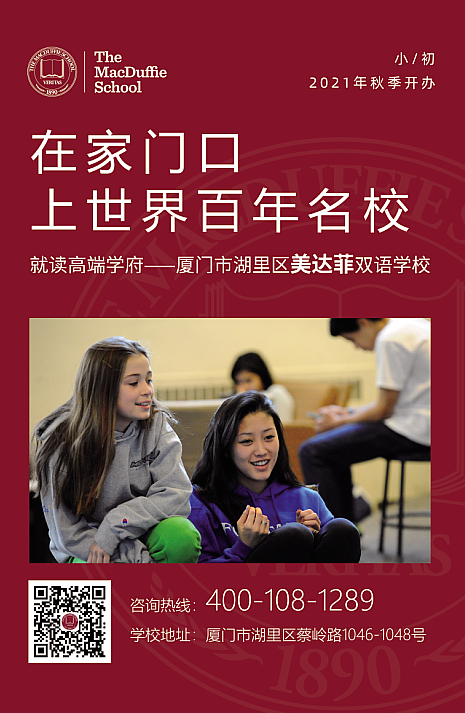 2021年秋季開(kāi)學(xué),屆時(shí)將為廈門(mén)學(xué)子帶來(lái)純正雙語(yǔ)教學(xué)服務(wù),來(lái)自全球教育界有名望、教學(xué)經(jīng)驗(yàn)豐富的師資隊(duì)伍和小班精品化教育模式。