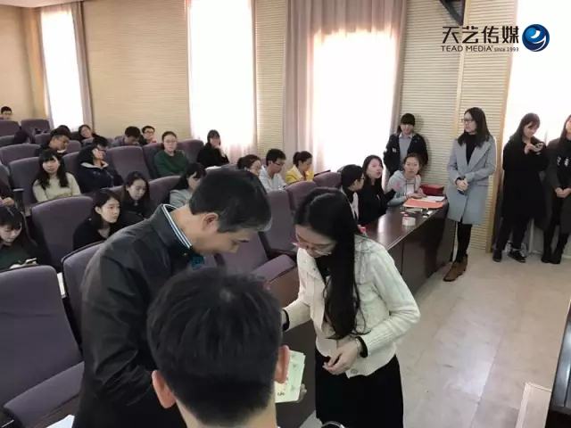 廈大新聞傳播學(xué)院黨委副書(shū)記黃輝先生、黨委副書(shū)記聶鑫女士、團(tuán)委書(shū)記戴瑩先生、冠名獎(jiǎng)學(xué)金設(shè)獎(jiǎng)單位嘉賓——天藝傳媒股份有限公司董事長(zhǎng)林少敏先生,以及獲獎(jiǎng)學(xué)生代表和部分學(xué)生齊聚一堂,共同見(jiàn)證了這一隆重的時(shí)刻。