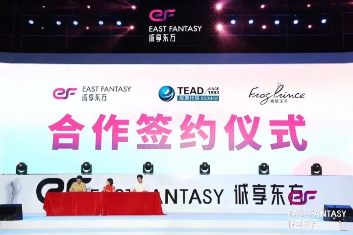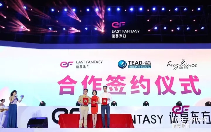 2017年10月21日,在誠享東方掛牌慶典晚會(huì)上,天藝傳媒攜手知名美妝移動(dòng)電商——誠享東方,及國內(nèi)領(lǐng)先日化企業(yè)——青蛙王子在廈門音樂島正式舉行簽約儀式。三方將在未來共同推出以“阿巴兔”為品牌形象的兒童護(hù)理系列產(chǎn)品。